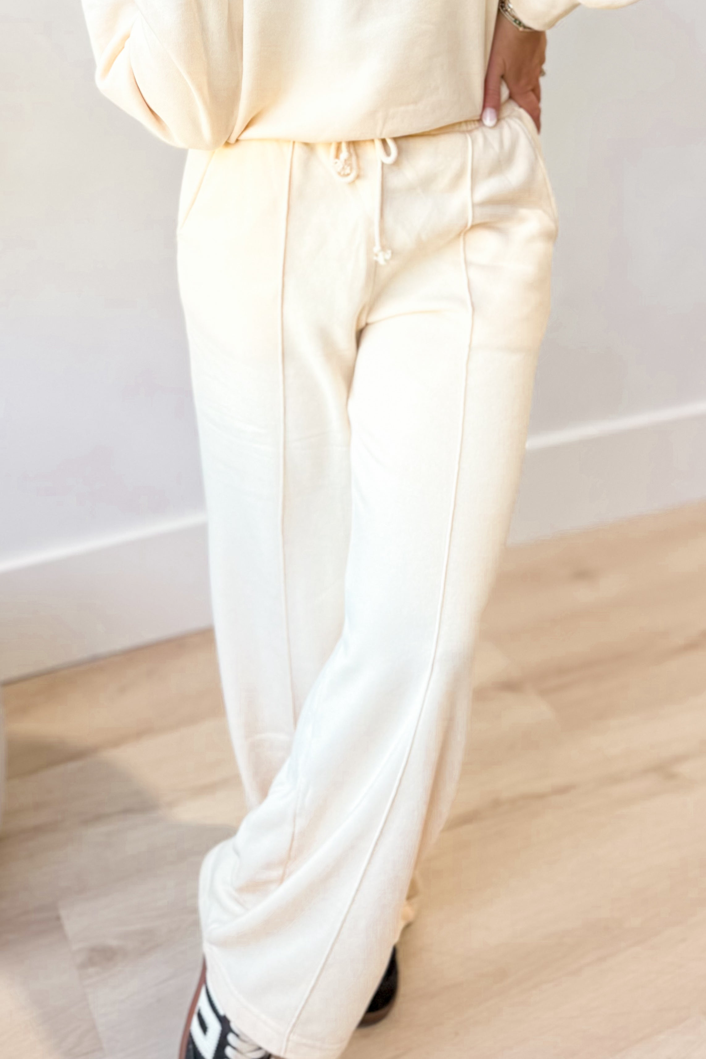 Get cozy and playful with the Laney Terry Cloth Wide Leg Pant by Hyfve. Featuring an elastic drawstring waist for a perfect fit and roomy pockets for your essentials, these pants combine comfort with style. The soft terry cloth fabric and wide-leg design make them ideal for lounging at home or stepping out with ease. Embrace laid-back vibes and effortless cool in every wear.