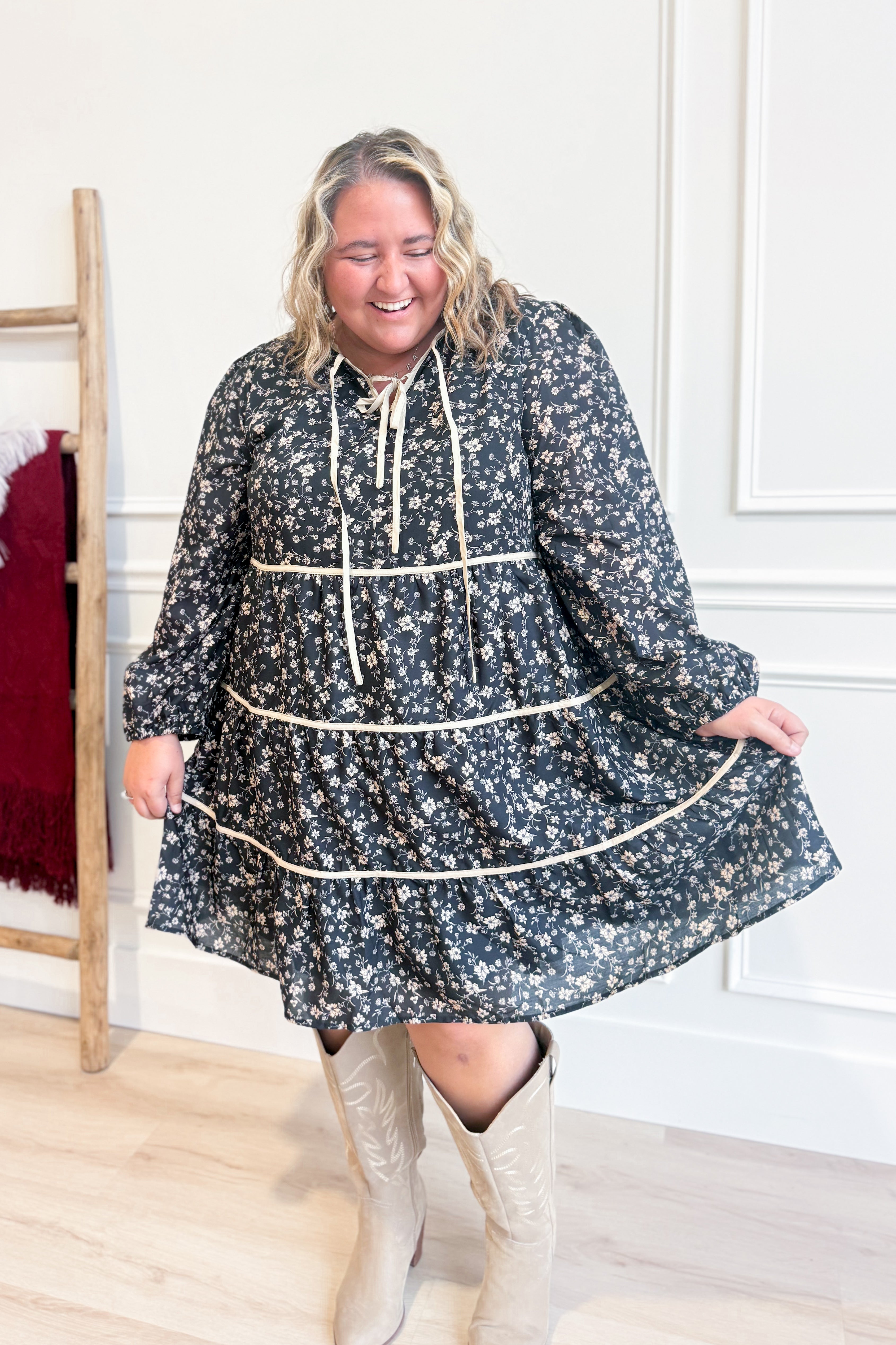 Bring a breezy, playful charm to your wardrobe with the Susan Floral Printed Tiered Dress. Featuring delicate florals and a tiered silhouette, this dress moves beautifully with every step. The long sleeves add a touch of elegance, while a subtle keyhole detail keeps the look fresh and flirty. Perfect for sunny strolls or casual gatherings, this dress is your go-to for effortless style and comfort.