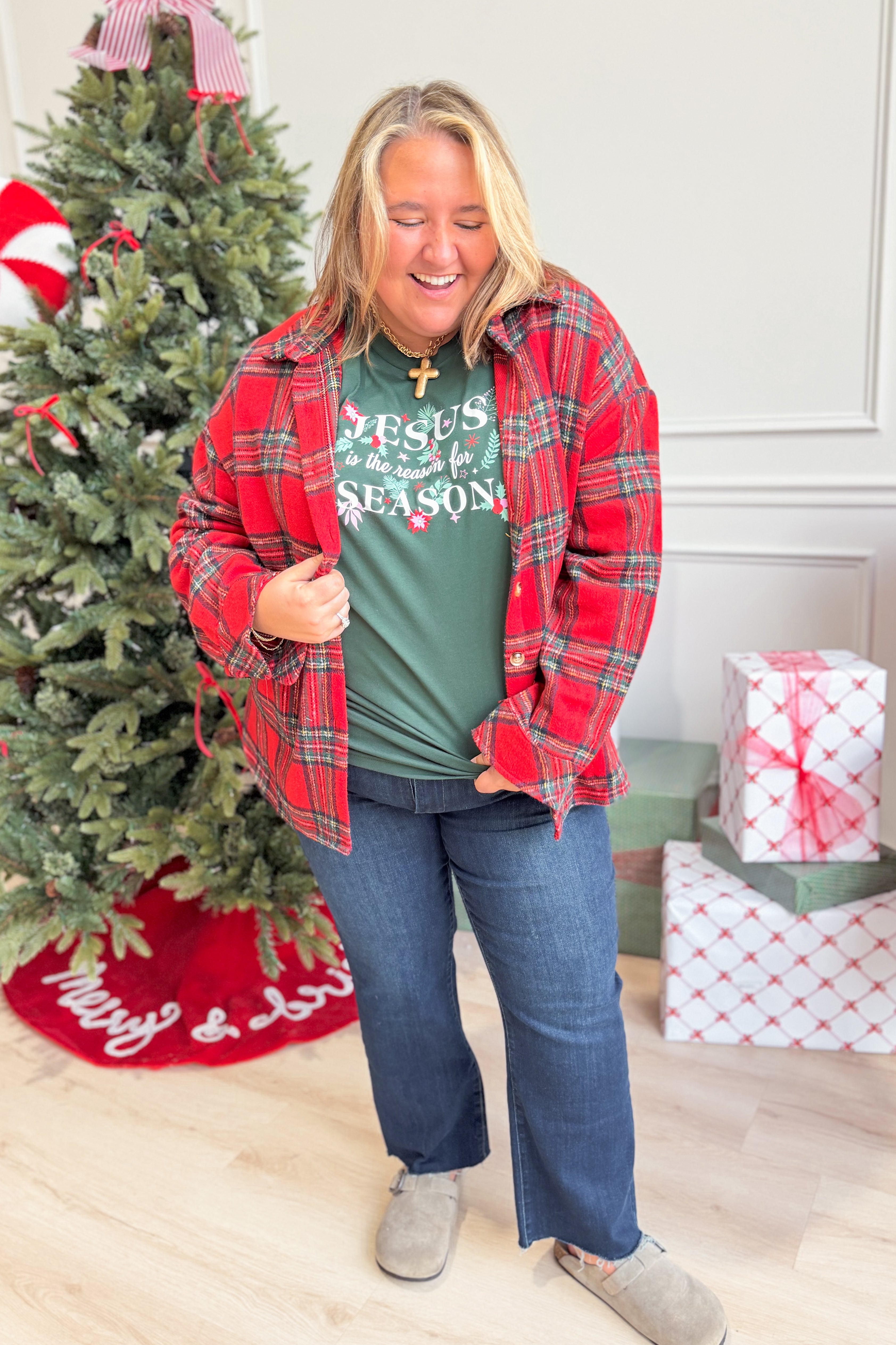Unleash your playful side this holiday season with the Poppy Holiday Plaid Flannel by GEEGEE. Featuring a classic plaid pattern, a cozy flannel material, and a fun lone sleeve design, this button down is the perfect lightweight addition to your festive wardrobe. Spread cheer with this quirky and stylish statement piece!