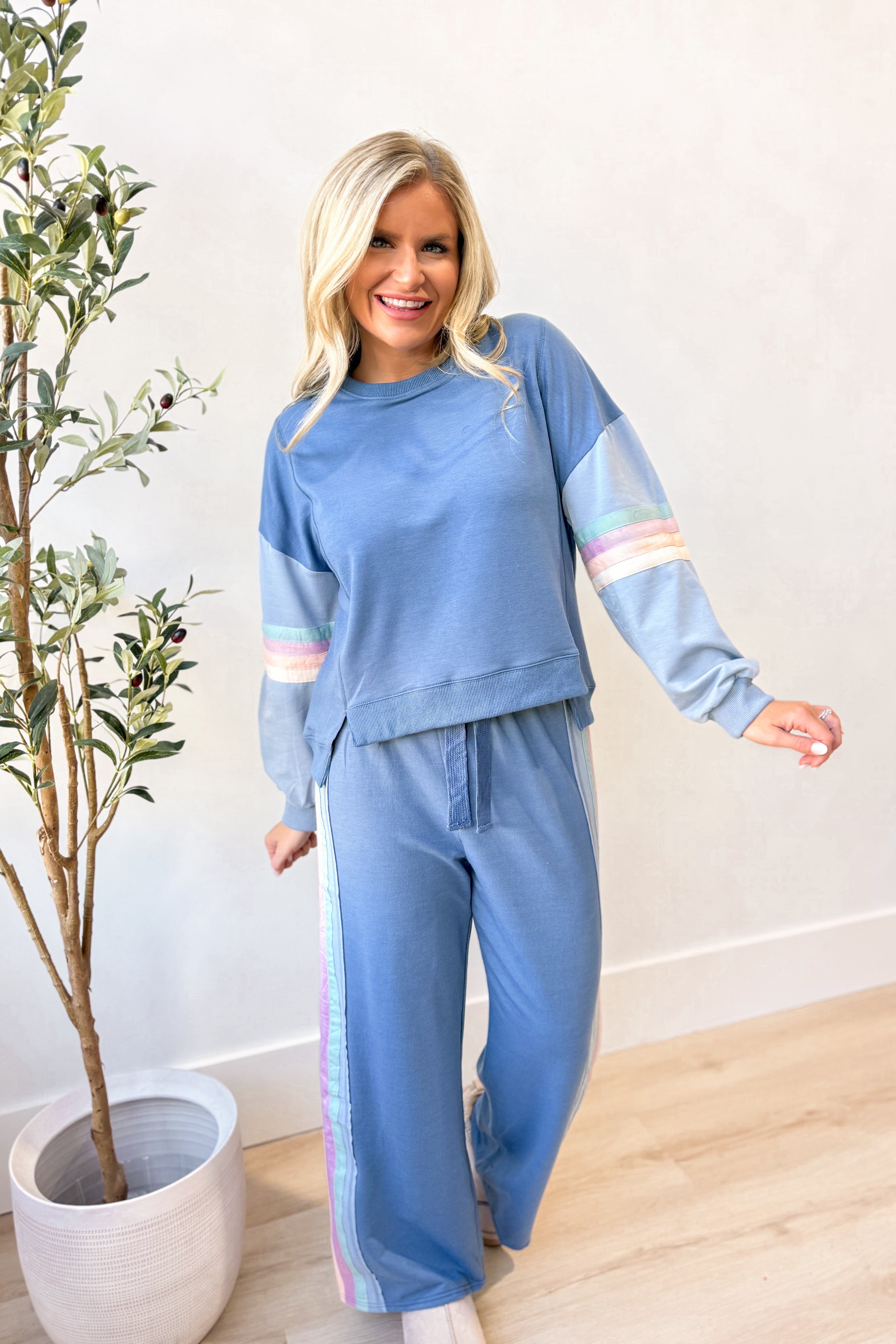 Get cozy and stylish with the Carrie Color Block Sweatpant Set from Very J. Featuring a relaxed drop shoulder and elastic waist, it ensures comfort with a fun twist thanks to bold color block sleeves. Made from soft terry cloth, this set is perfect for lounging or casual outings. With a 13" rise and 28" inseam, it offers a flattering fit that moves with you. Embrace laid-back vibes without sacrificing style!