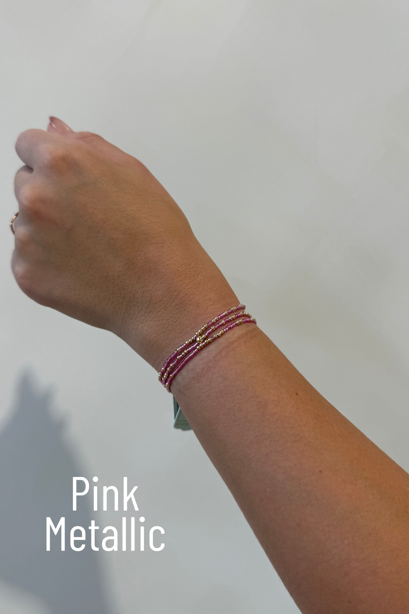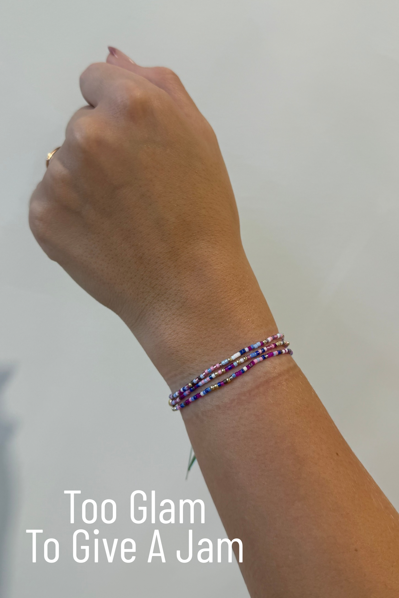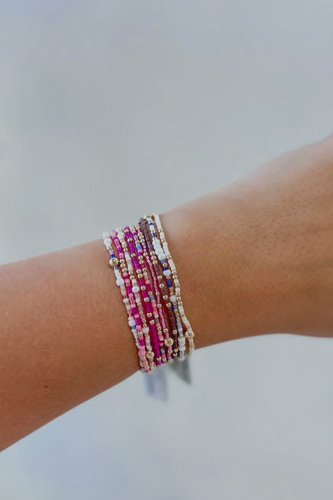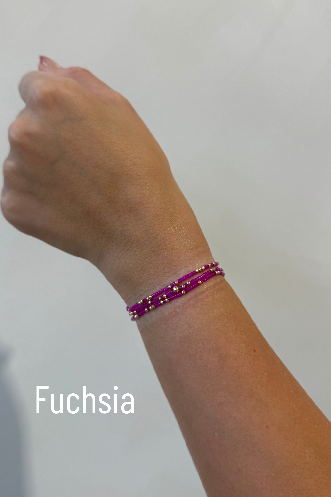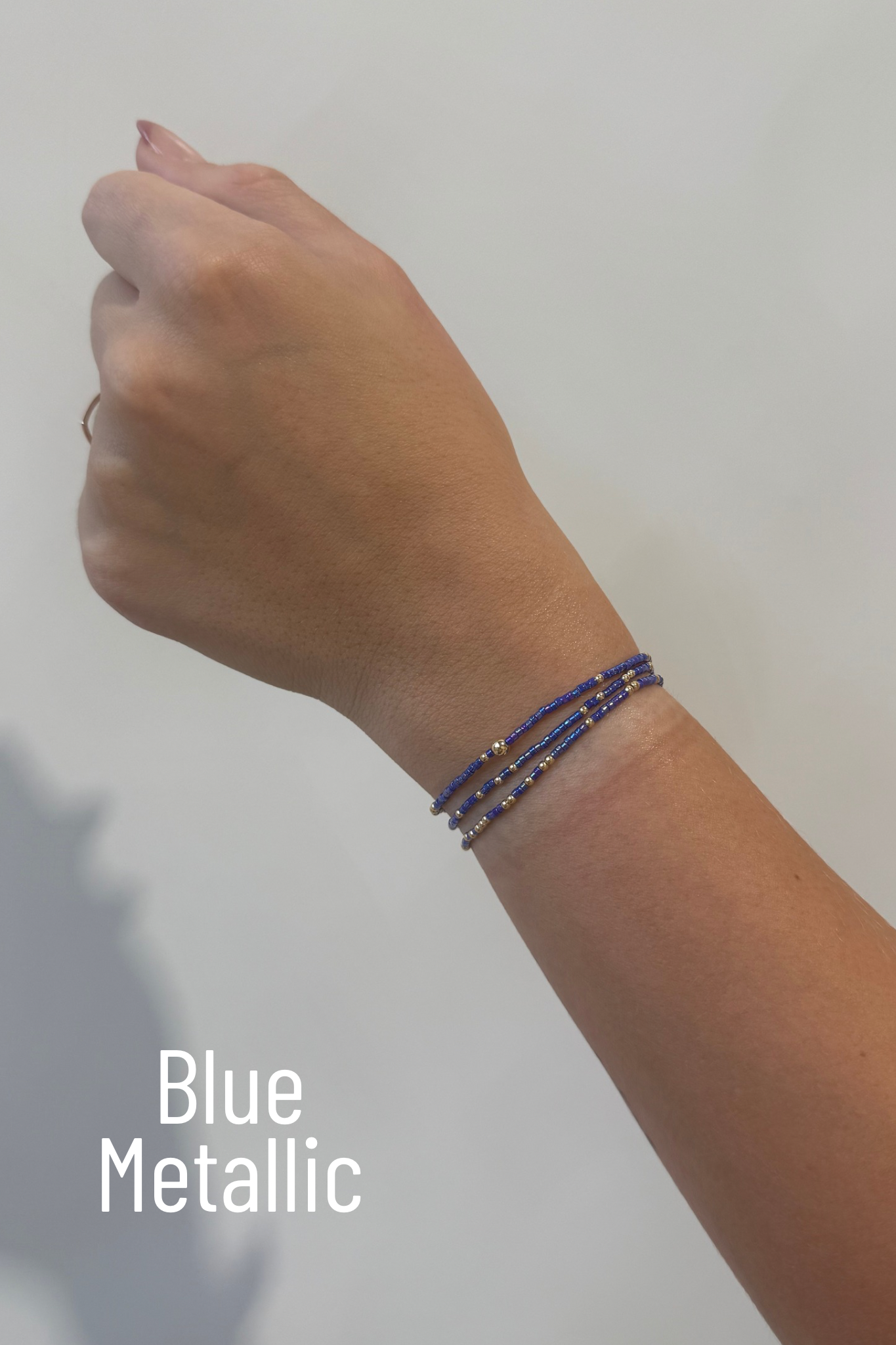 Hand beaded on high performance elastic for a slight stretch to easily roll on and off your wrist