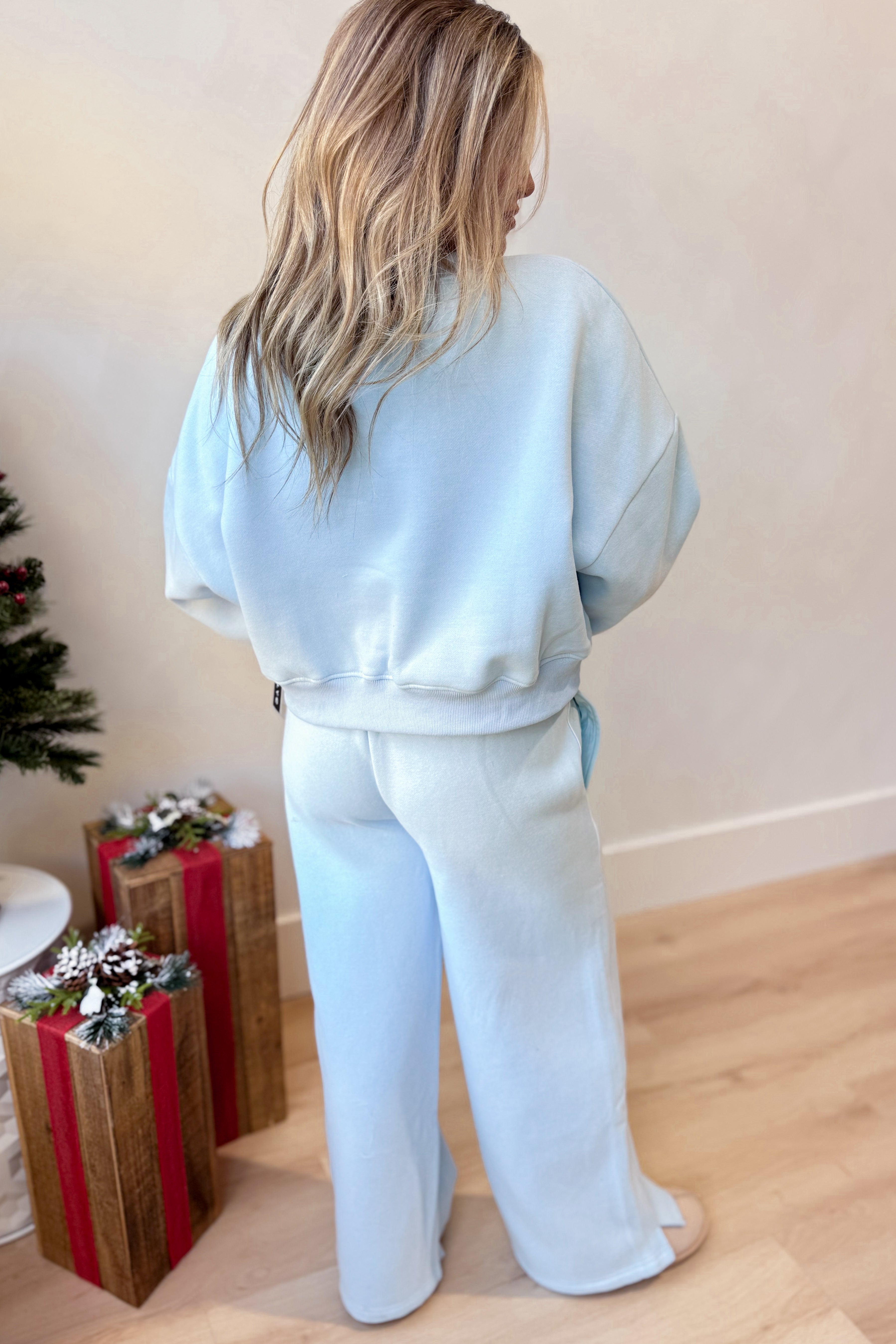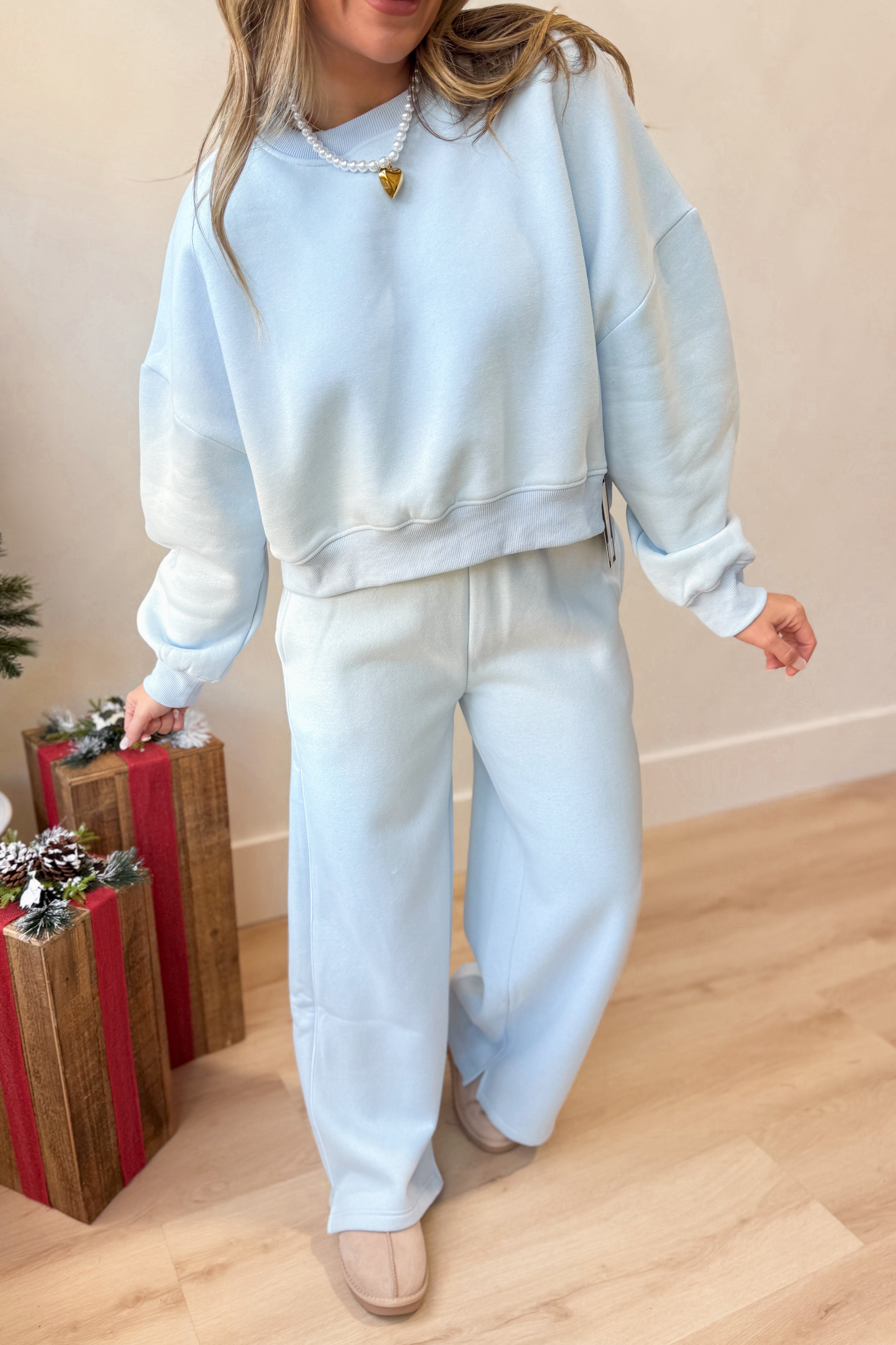 Get cozy in the Jaycee Fleece Pant Set by KIMBERLY C—your new go-to for effortless comfort! This playful two-piece features a soft, fleeced fabric that feels like a warm hug, paired with relaxed wide-leg pants that let you move freely. The drop shoulder long sleeves add a laid-back vibe perfect for lounging or running errands. Solid and chic, it's the ultimate comfort combo that doesn't compromise on style.