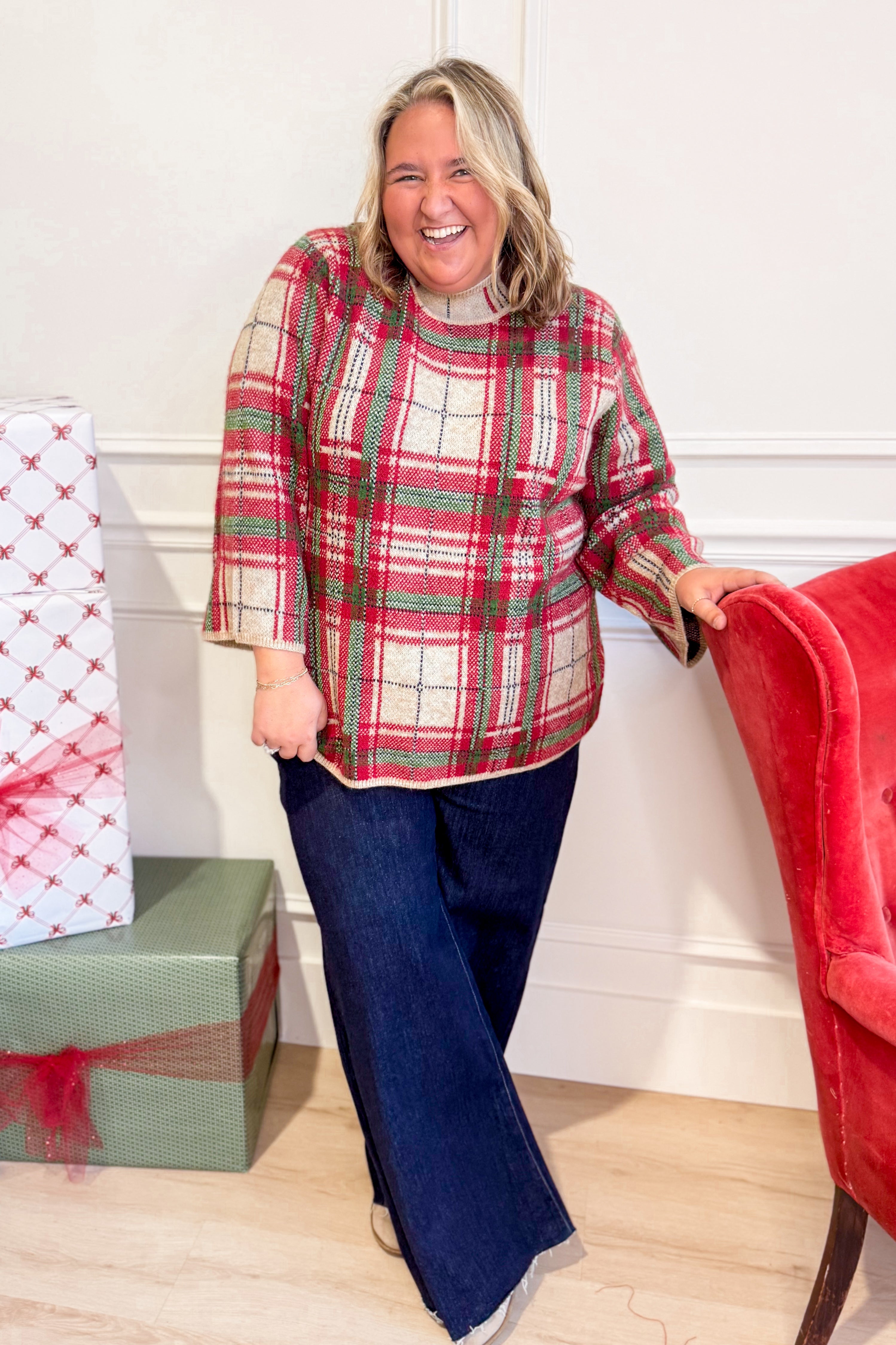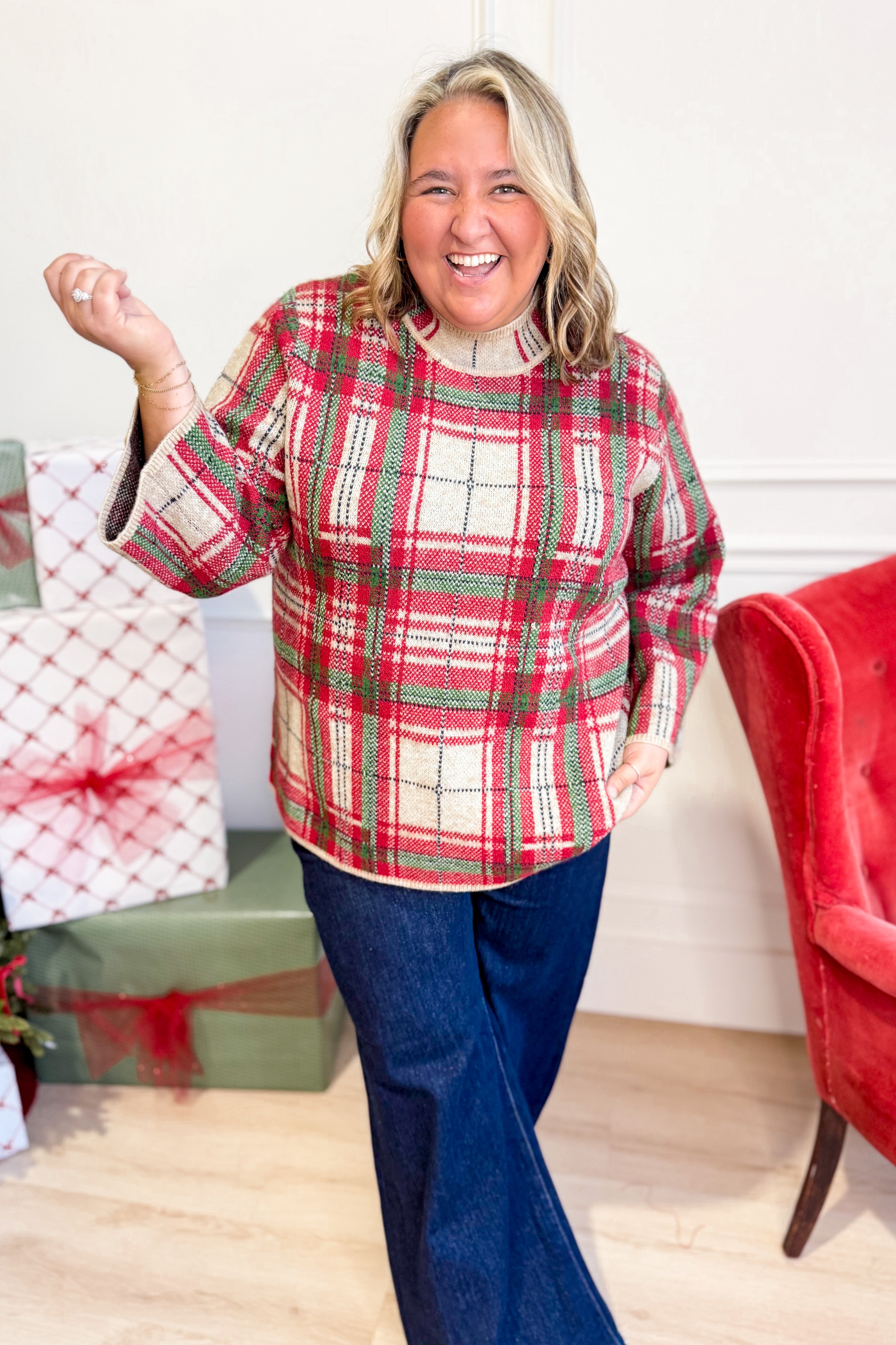 Jolly Plaid Mock Neck Top
