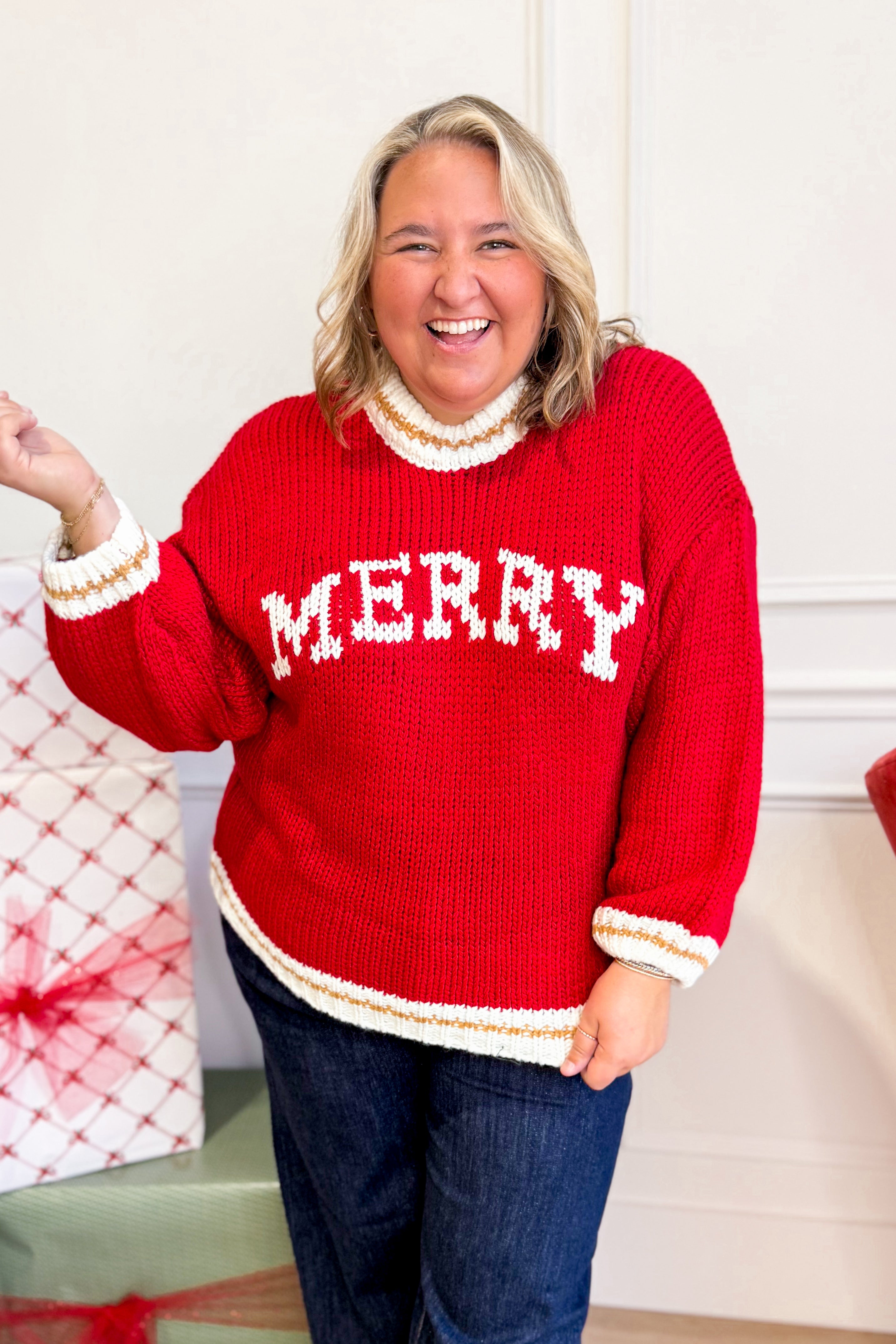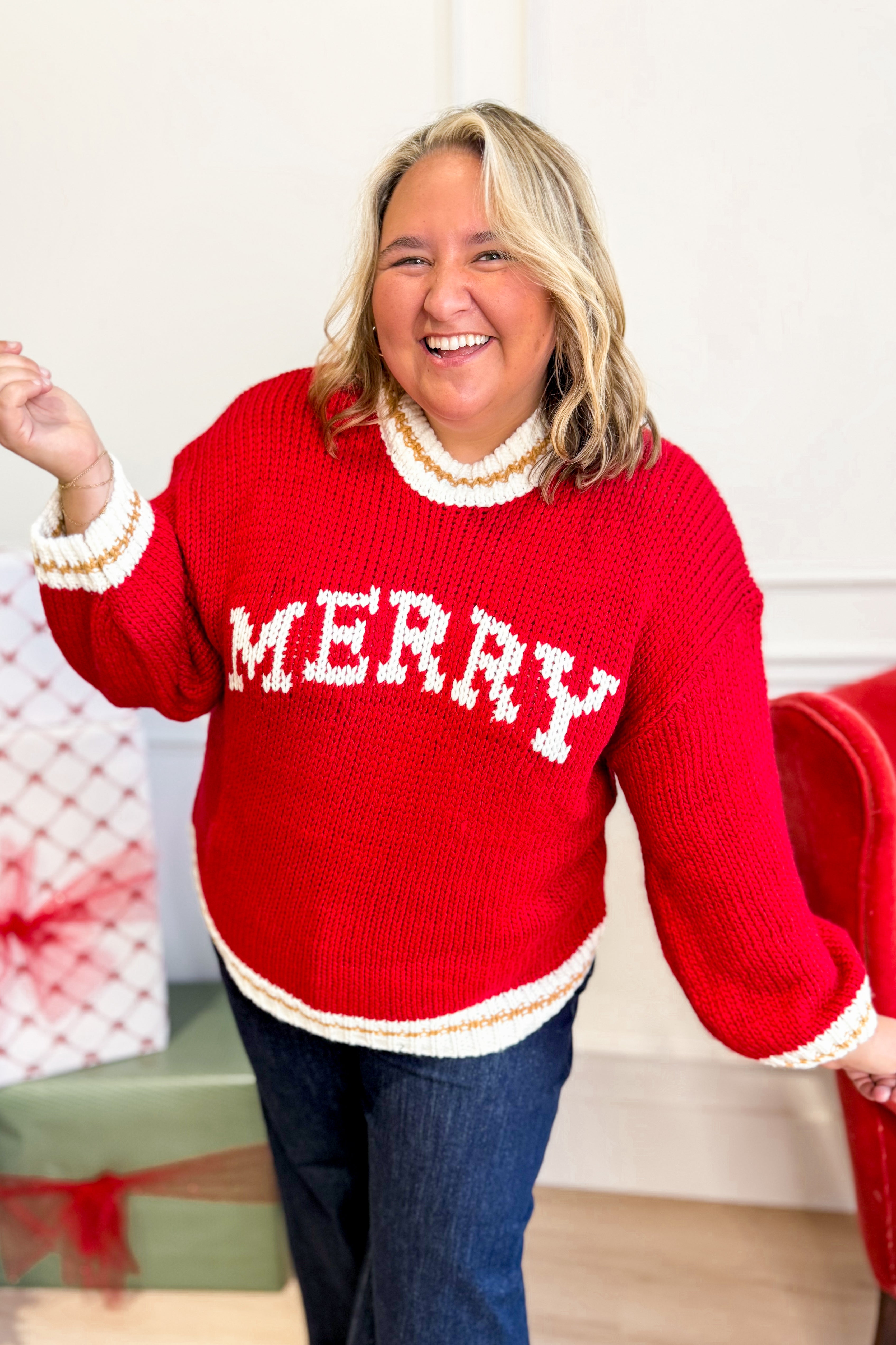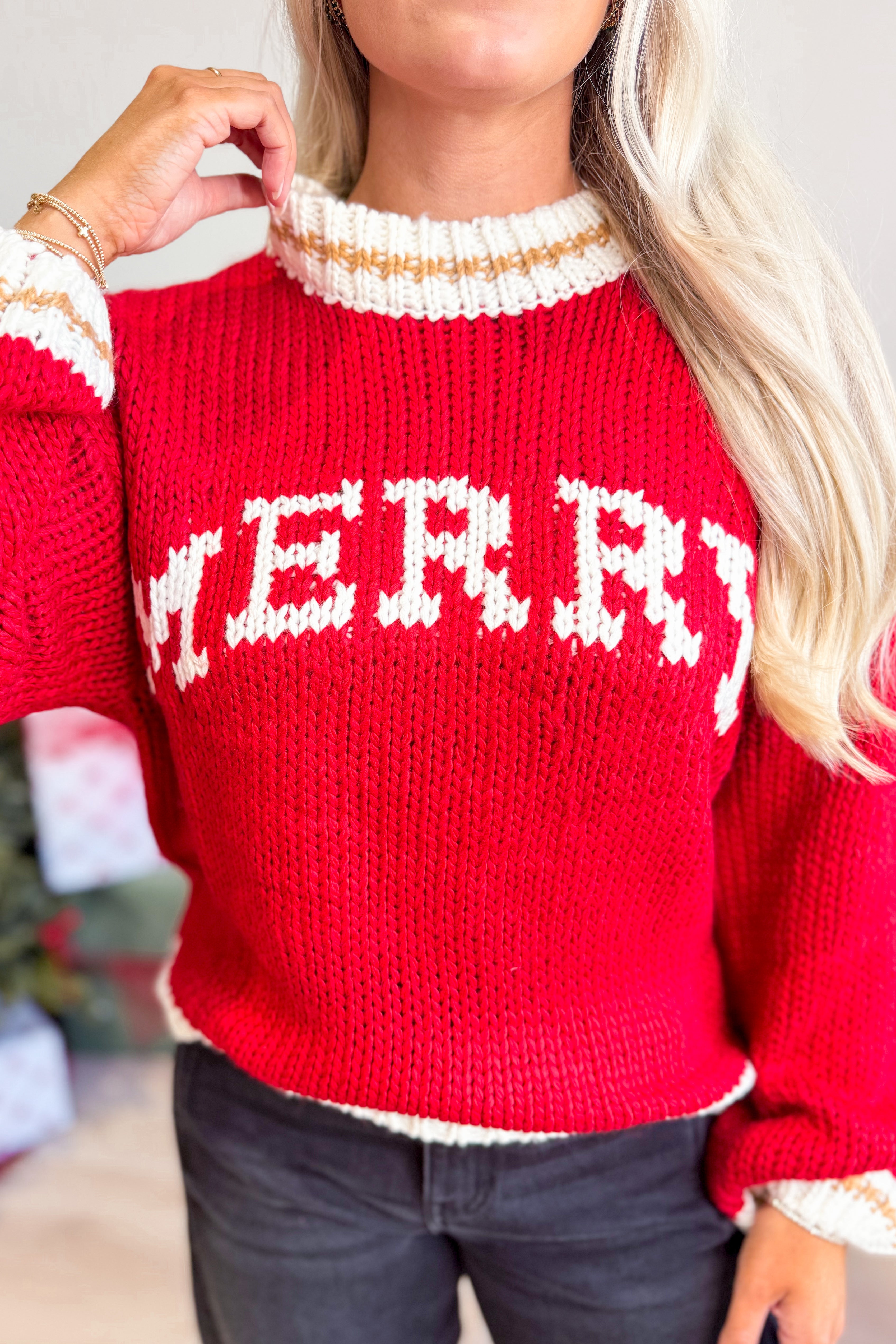 Celebrate the season in cozy style with the Merry Time Of The Year Sweater by Baevely. This knitted sweater features a playful "MERRY" trim, a comfy round neck, and trendy drop shoulders for a relaxed fit. Perfect for spreading holiday cheer while staying warm and stylish all season long.