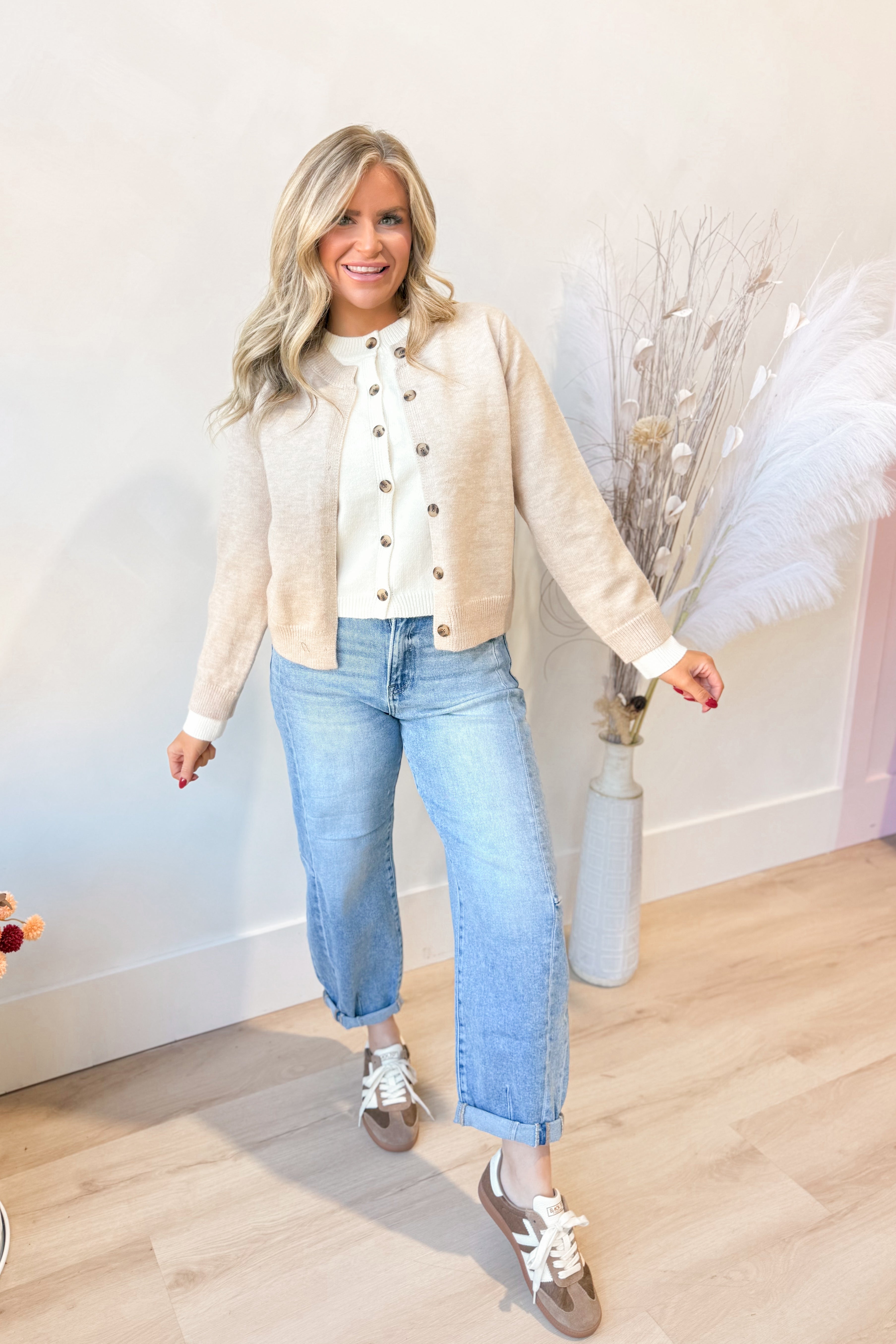 Cozy up in the Olivia Double Layered Knit Cardigan! This playful sweater features a soft, double-layered knit that adds warmth without the bulk. With long sleeves and a classic button closure, it’s the perfect solid piece to layer over your favorite outfits and keep you snug all day long.