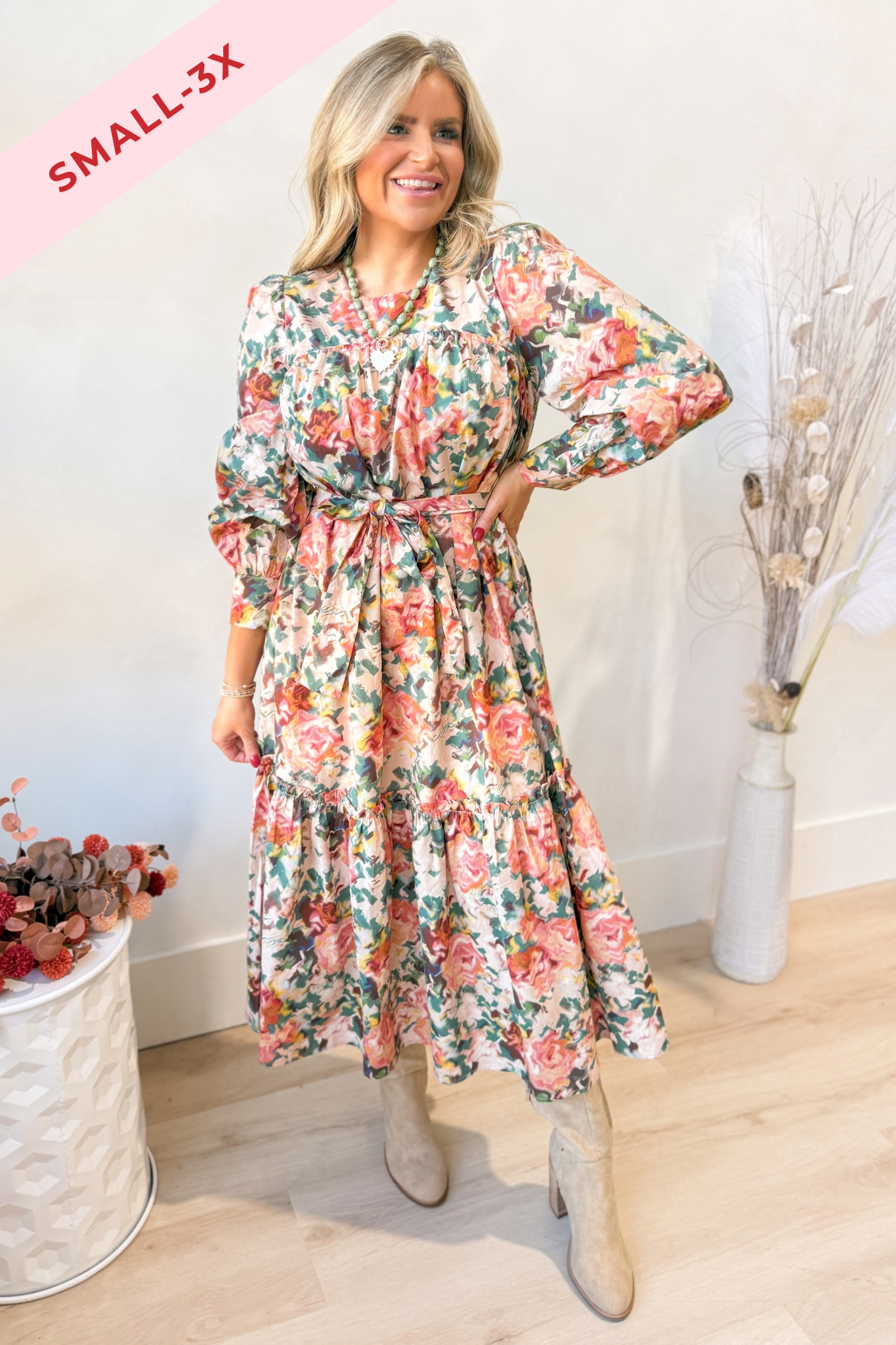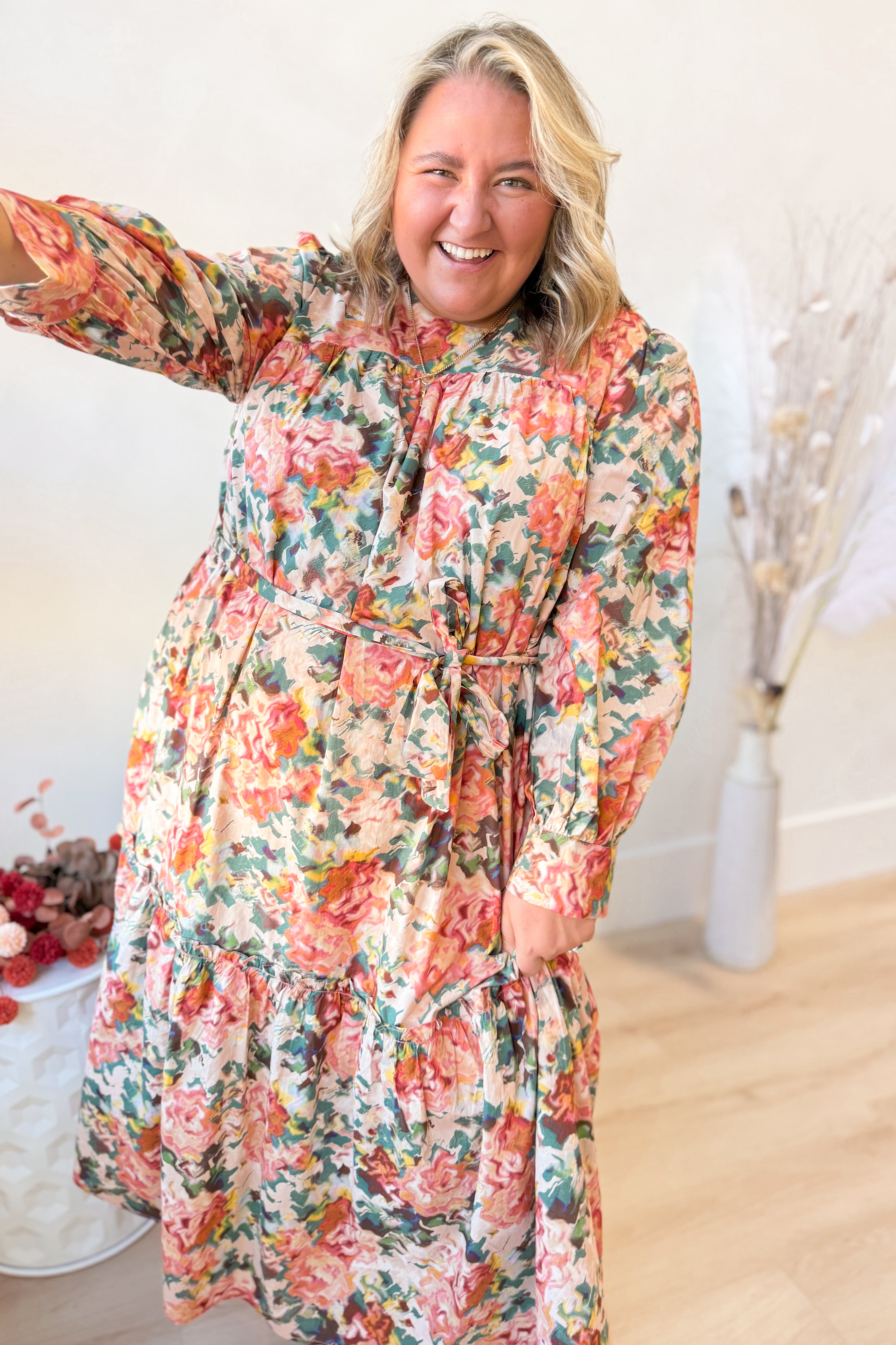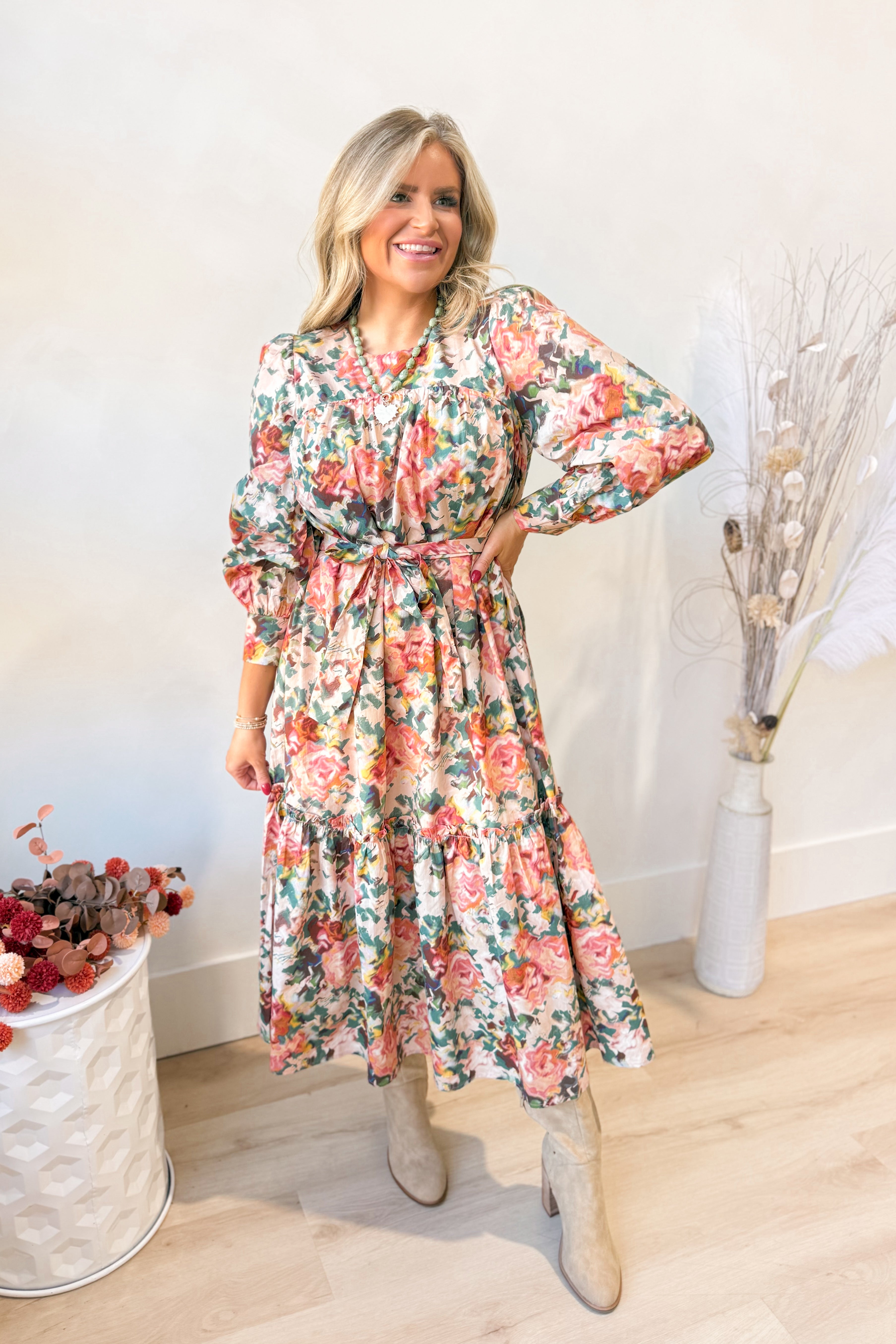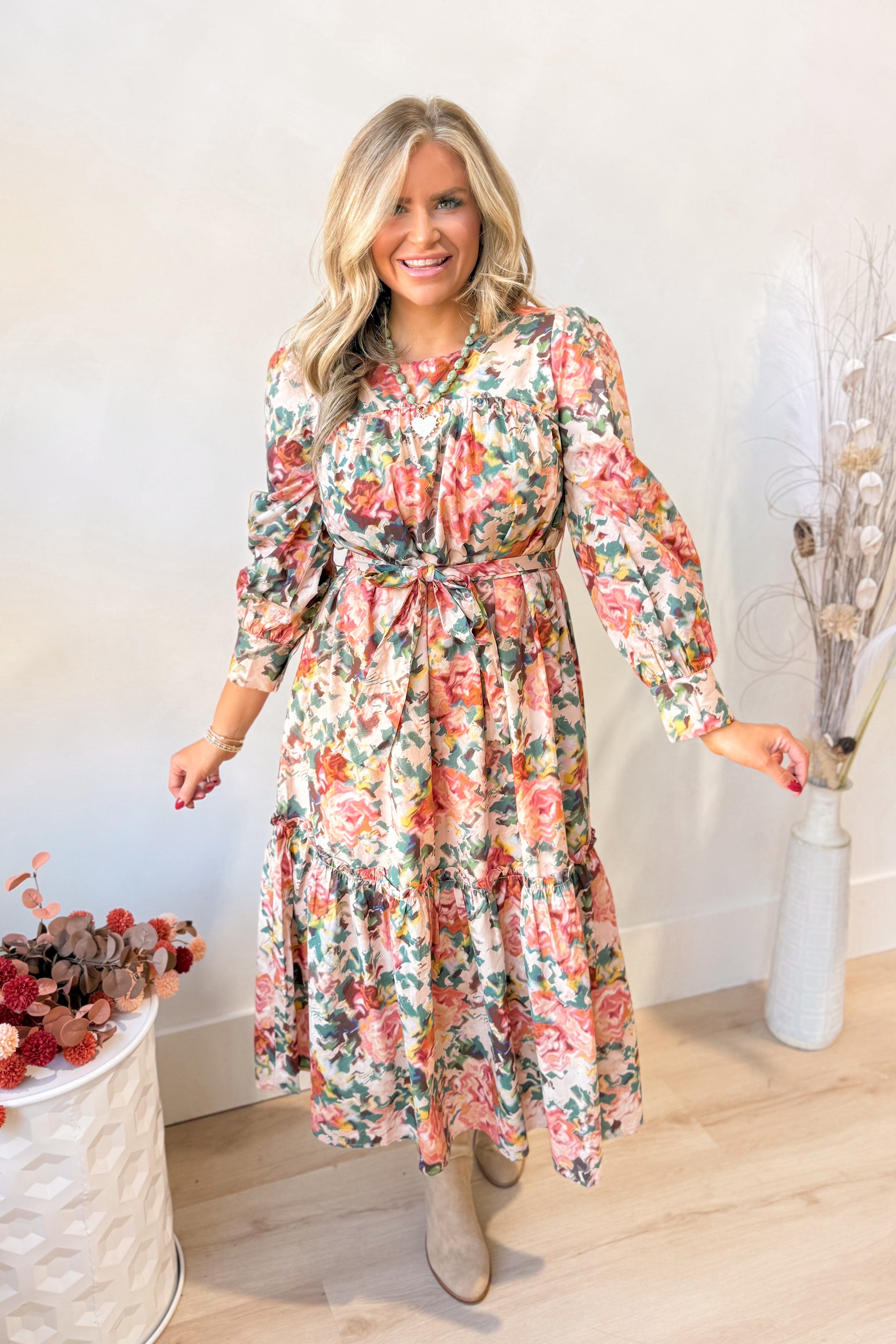 Step into springtime charm with the Sophia Floral Tie Waist Dress by GEEGEE. This playful dress features a flattering tie waist that highlights your silhouette, a classic crewneck, and long sleeves perfect for breezy days. Delicate pleated details add a touch of whimsy, while the vibrant floral pattern brings fresh energy to your wardrobe. Ideal for brunches, garden parties, or anytime you want to bloom with style.